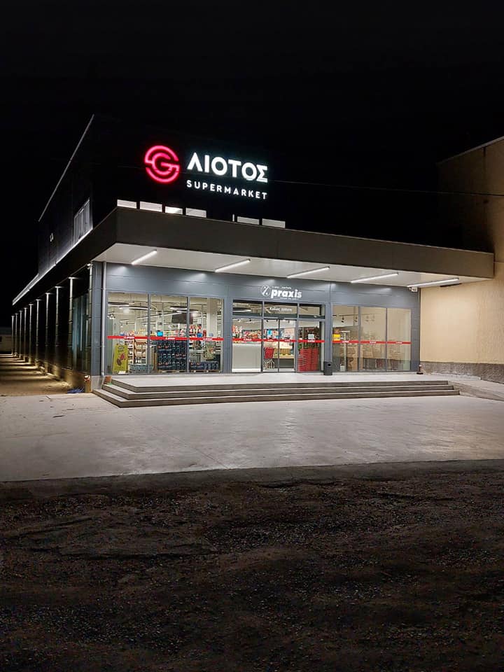 Liotos supermarket hall Location: Mitikas, Etoloakarnania, GreeceType: Industrial buildingStatus: Completed—Architecture: KM engineersStructural design: KM engineersM&E design: Andreas KapniarisConstruction: Metallodomi, Selevistas Kostas