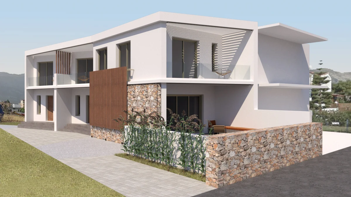 Location: Mitikas, Etoloakarnania, Greece Type: Villas Area: 230m² Status: In progress — Architecture: KM engineers Interior and styling: KM engineers Architectural visualisation: KM engineers Landscape design: KM engineers Structural design: KM engineers M&E design: Ippokratis Panouklias Construction supervision: KM engineers, Ippokratis Panouklias